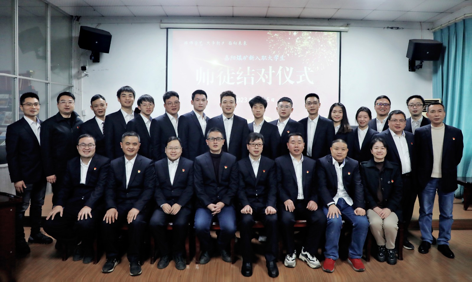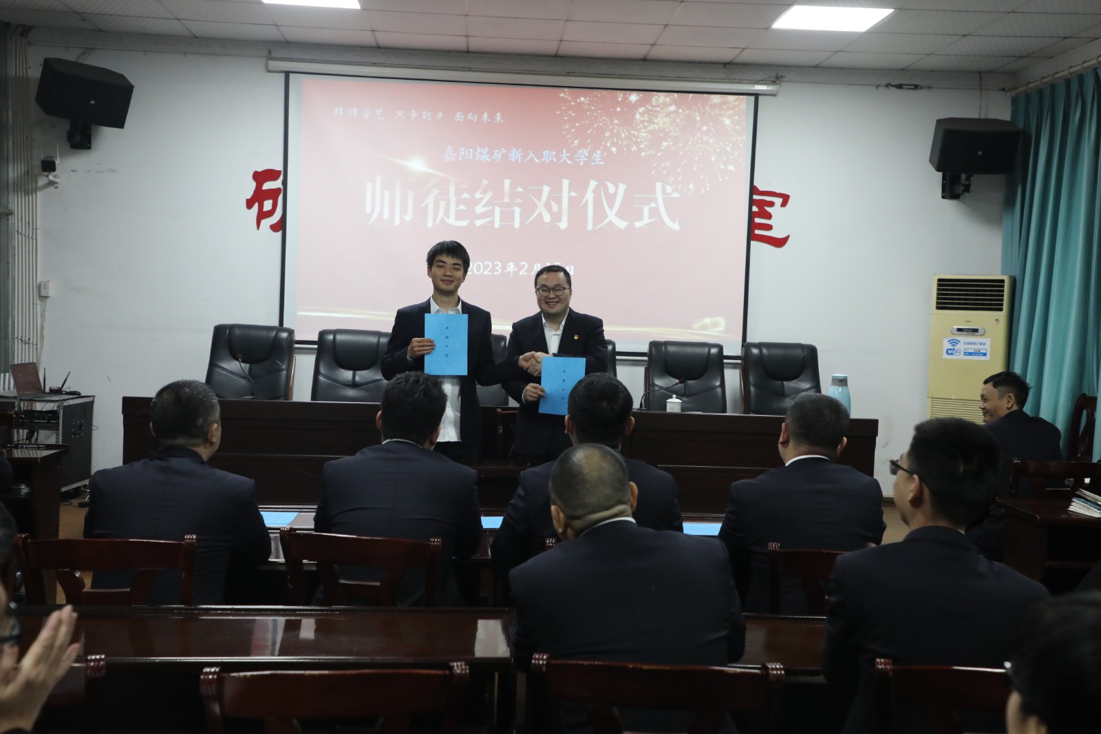 九游(中国)一站式服务平台职工培训学校校长程敏、嘉阳煤矿矿办领导参加了师徒结对仪式。