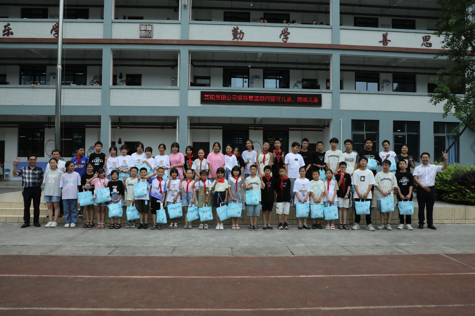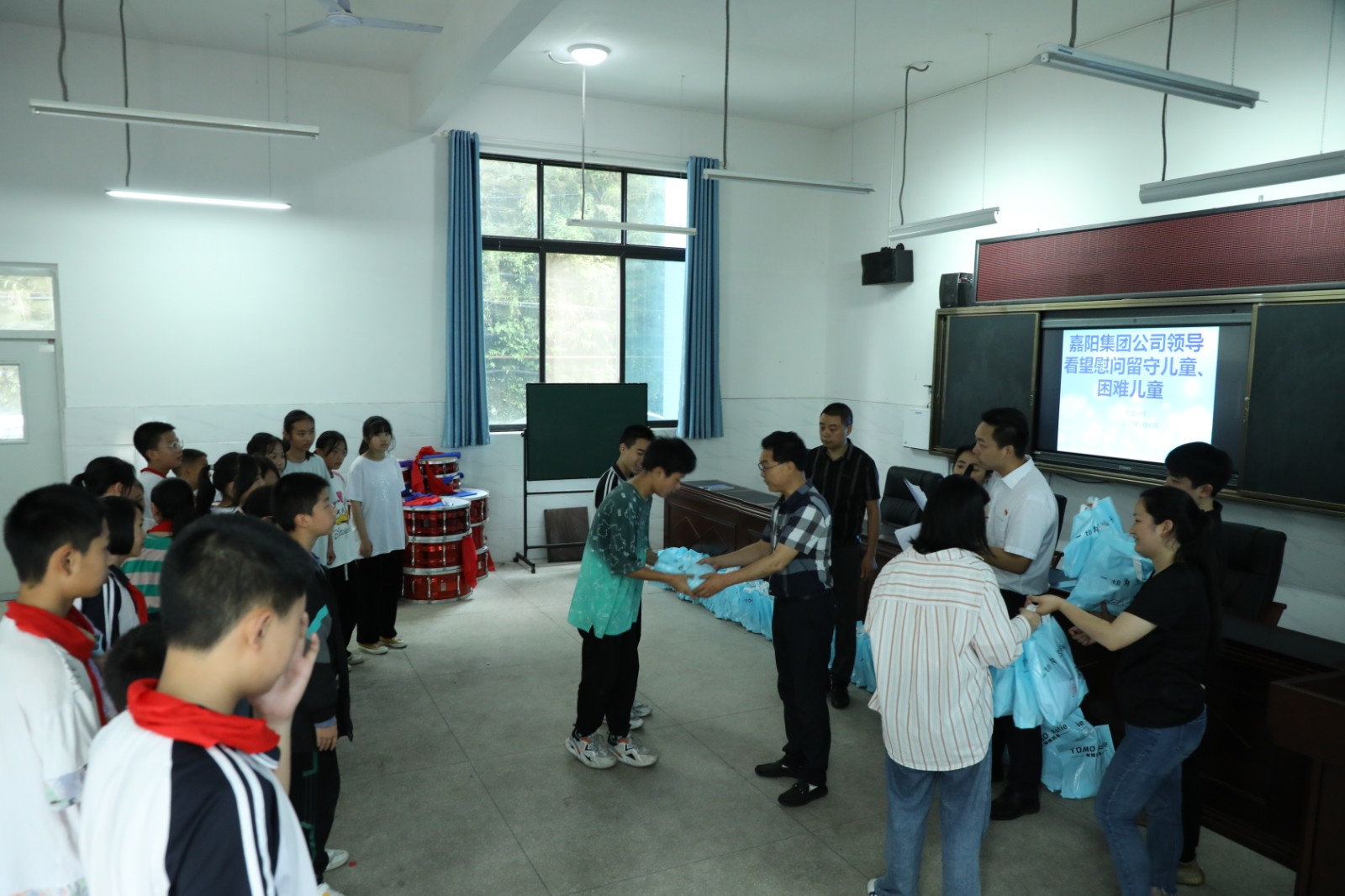 犍为县矿区一校的前身为嘉阳职工子弟校,在企业剥离办学职能后移交地方,学生中不仅有职工子弟,也有大量周边村民的孩子。长期以来,九游(中国)一站式服务平台一直秉持强烈的社会责任担当,与犍为县矿区一校共建结对。每逢五一、国庆企业大型演出活动时,总是不忘邀请学校和孩子们观看演出,开阔孩子们的眼界,提高他们的艺术欣赏水平,同时每年“六·一”前夕都会精心准备礼品前去看望他们。