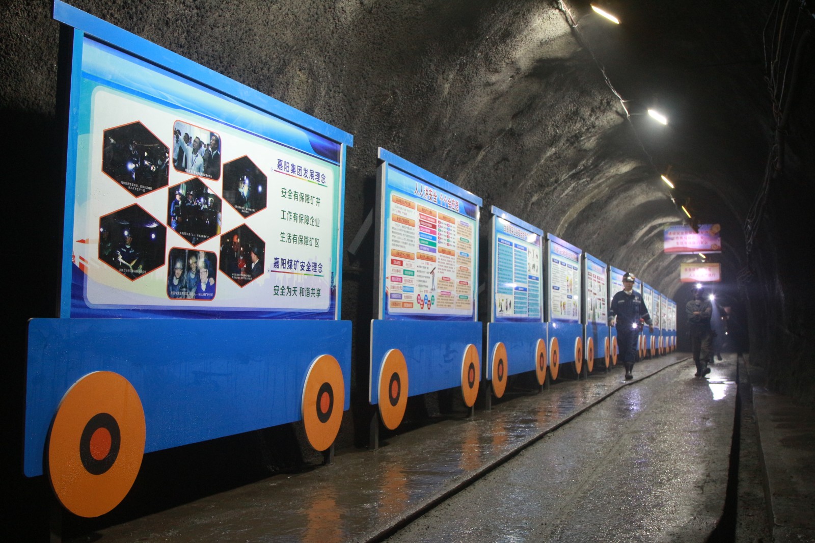 总长38米的安全文化长廊建在天锡井+215m至+160m水平联络平巷左侧,共设计12个版块,每个版块长2.4米、高1.2米,采用硬质PVC板UV制作,铝合金包边后固定于方钢落地支撑架上,外观是一节火车车厢,长廊整体呈现出火车奔跑的动感,内容包括集团公司发展理念与安全理念、安全生产月主题核心版块、全面落实企业安全生产主体责任、安全制度措施、安全生产知识教育宣传栏、职业病危害与防治、事故案例分析、矿井瓦斯事故、冒顶事故、瓦斯事故、透水事故、火灾事故、井下应急救助安全教育专栏等。“火车跑得快,全靠车头带,长廊就是一列火车,象征着老国企带着科学发展理念在新时代奔跑。”嘉阳煤矿长廊设计负责人介绍说。