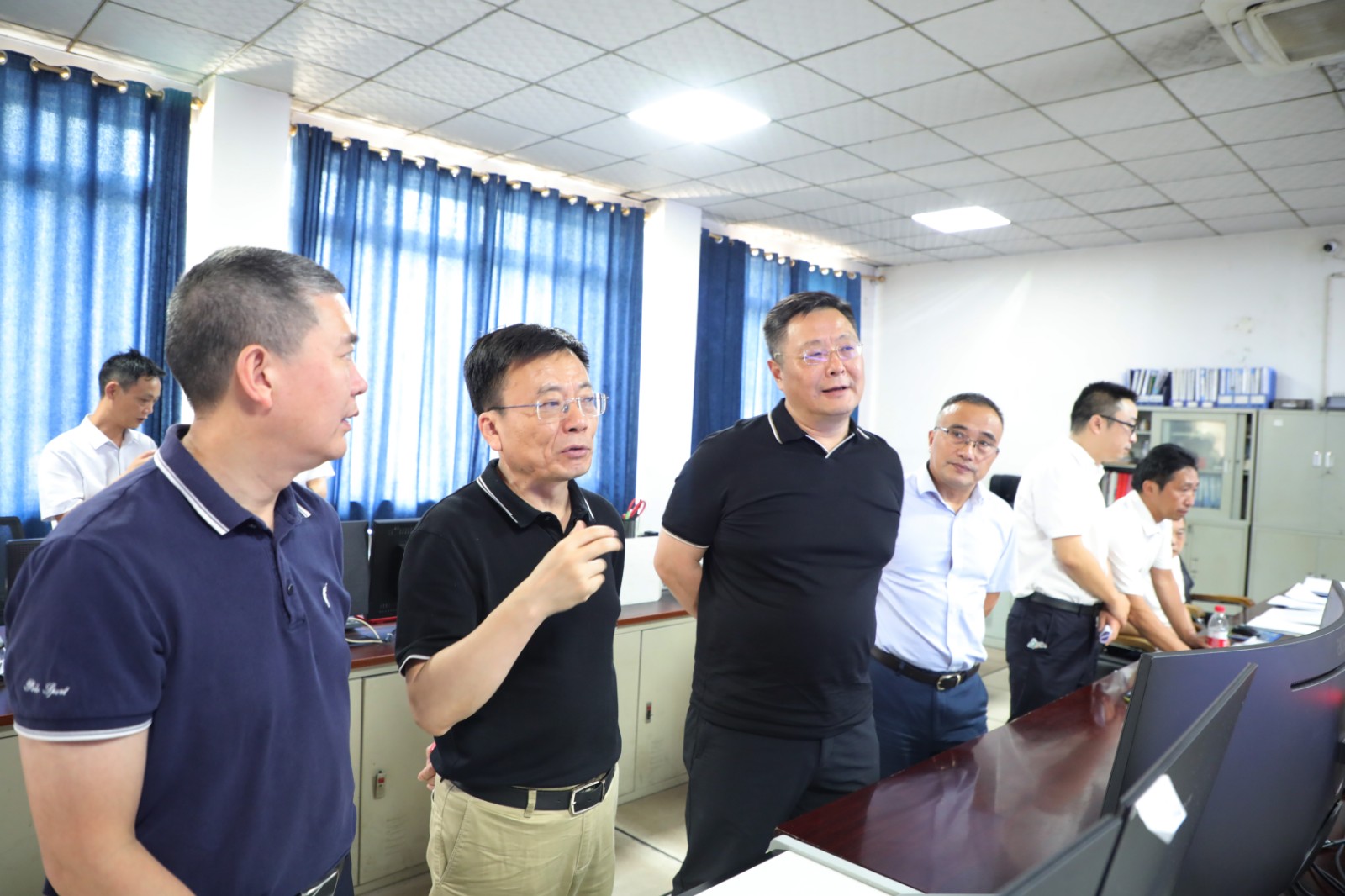 李文志一行深入主产单位嘉阳煤矿调度中心和瓦斯发电站,重点检查了调度系统运行情况,了解了煤矿井下停产检修工作现状,查看了信息平台煤矿三维硐室演示效果,巡视了瓦斯发电站设施设备运行情况以及巡查记录台账。一路上,督导组听取了公司安全生产工作情况汇报和大运会期间值班值守工作安排等,详细了解了公司“迎大运·保安全”的集中整治专项行动、隐患排查治理、现场管理等安全生产主体责任落实情况。