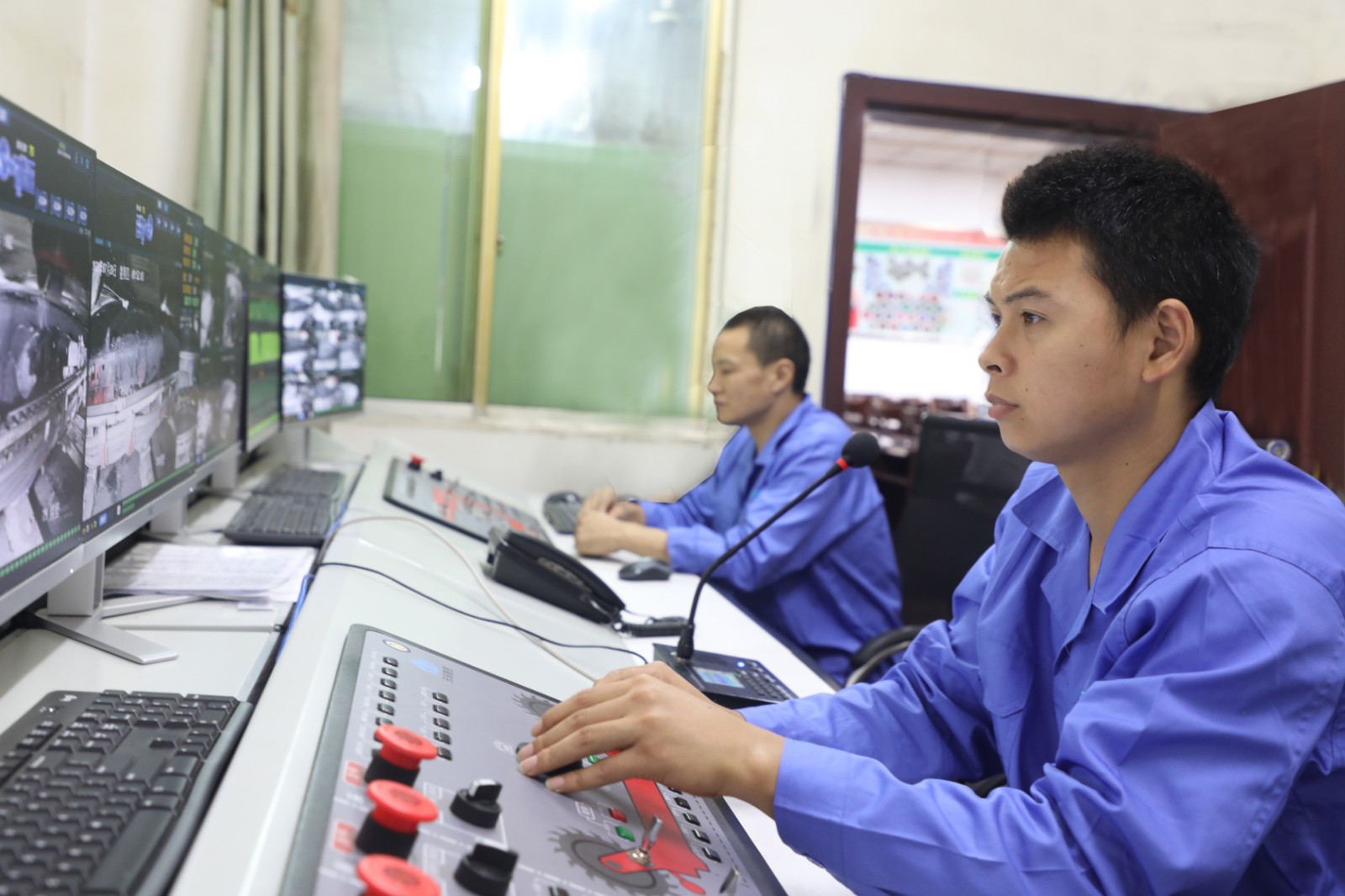 日前,笔者在嘉阳煤矿采煤二队30231智能化综采工作面地面远程操控室看到,两名采煤机司机身着干净衣服坐在操控台前,目光注视于前方的多个显示屏,不时动动操控手柄,像打游戏一样便将煤炭开采出井。