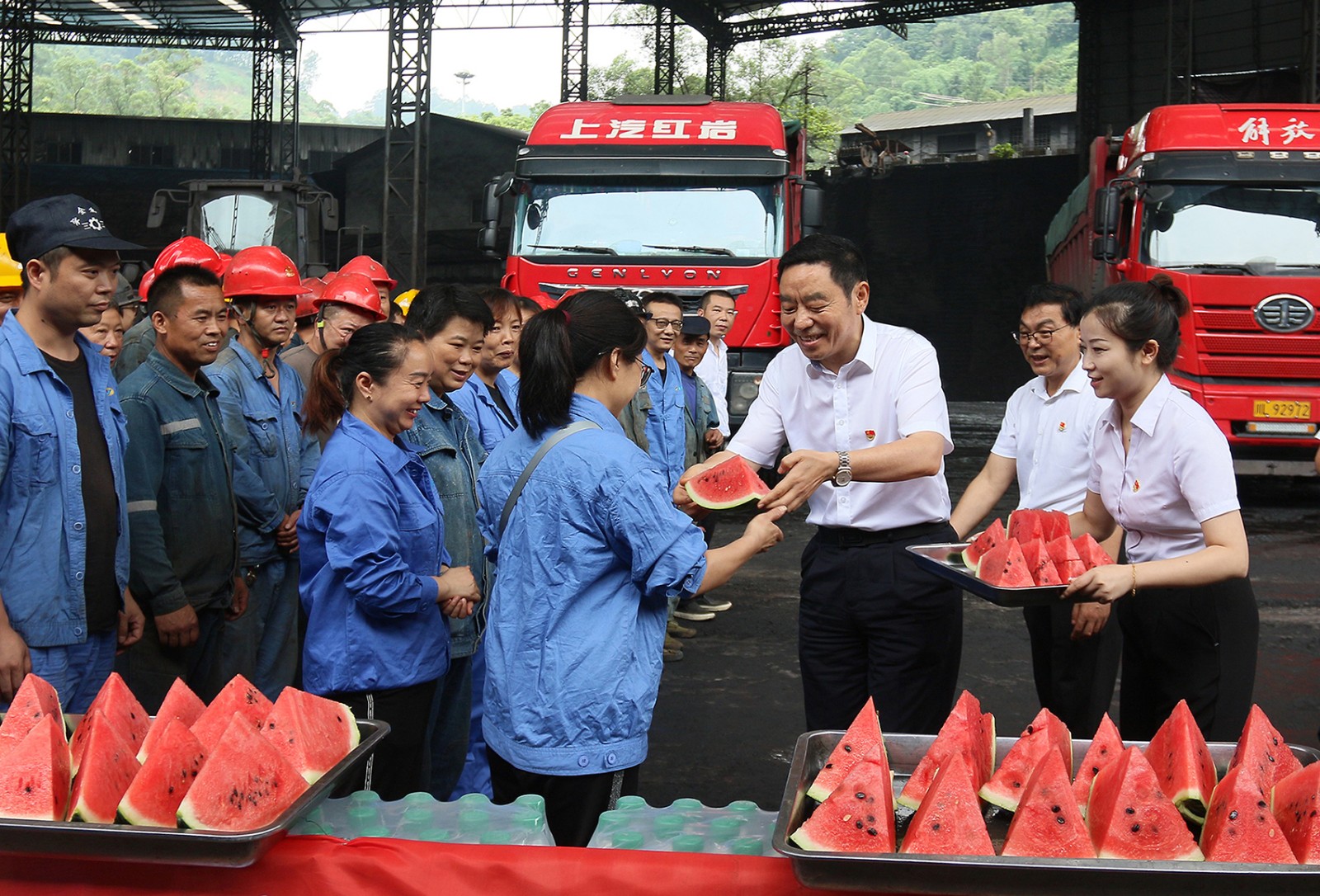 邓凯一行代表川投集团看望慰问了嘉阳煤矿炭坝等高温战线上工作的职工,与大家亲切交流,了解了其工作生活情况,并将甘甜的西瓜和清凉的矿泉水纷纷送到职工们手中,不断叮嘱大家注意身体健康和工作安全,祝大家身体健康、工作顺利。