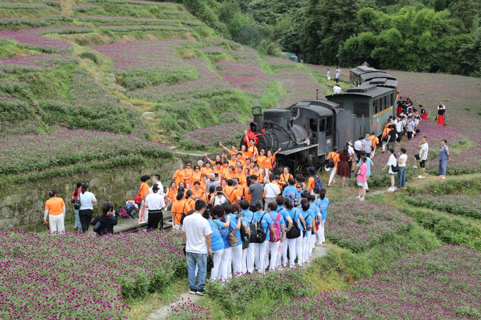 据了解,今年段家湾的千日红花季将持续到10月初。为方便游客更好感受嘉阳小火车与千日红花海的独特魅力,川投峨旅特别制定了嘉阳小火车观光专列发车时间表。在7月12日至7月31日,跃进站发车时间为10:30和14:30,芭蕉沟返程时间为12:00和16:00;7月12日至7月31日期间周末,跃进站发车时间为10:00、11:00、13:00、15:00,芭沟站返程时间为11:30、13:30、15:30、16:30。
