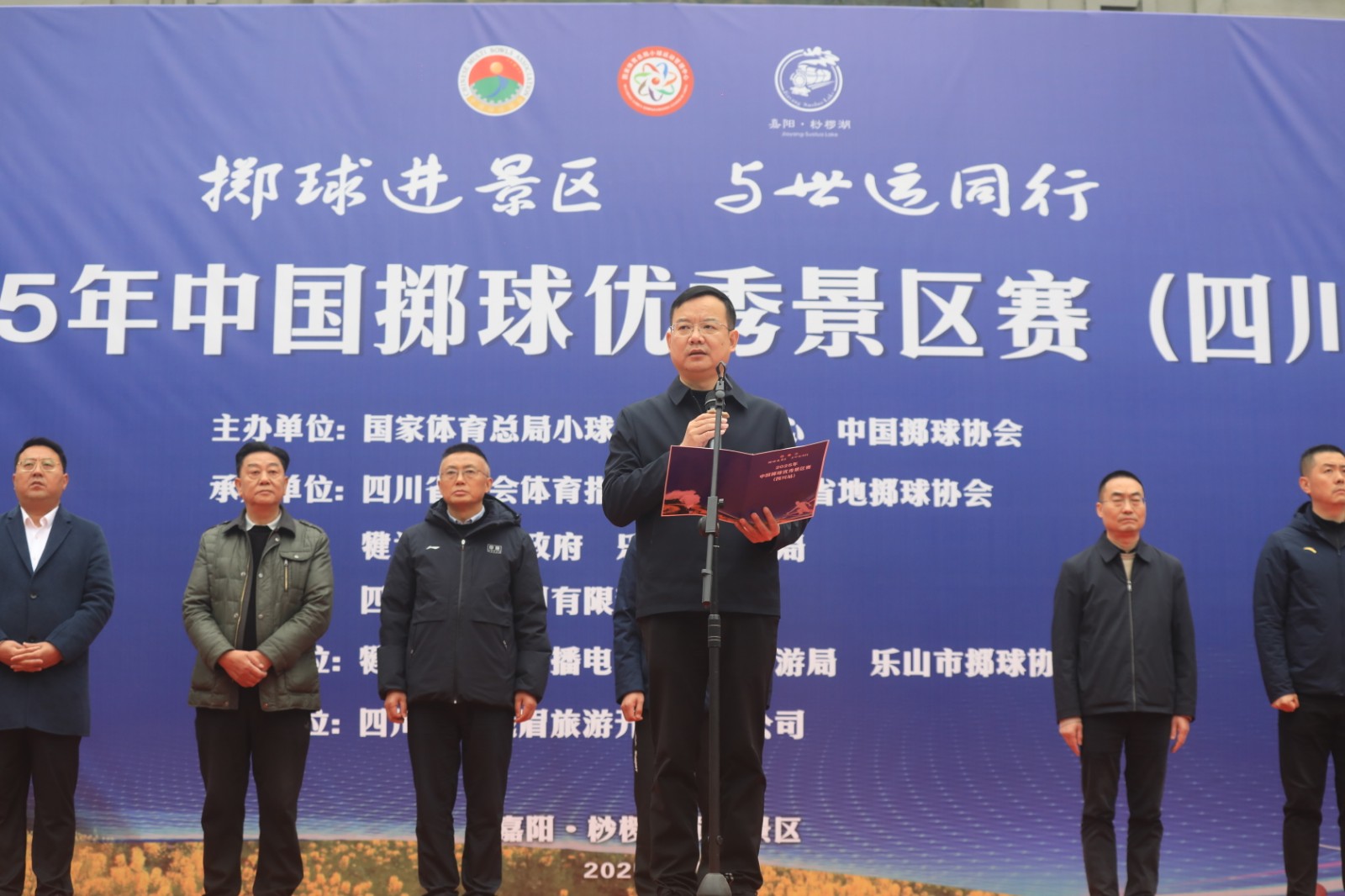 本届赛事由国家体育总局小球运动管理中心、中国掷球协会主办,四川省社会体育指导中心、四川省掷球协会、乐山市体育局、犍为县人民政府、四川九游(中国)一站式服务平台承办。开幕式上,乐山市人民政府副市长许天毅致欢迎辞。国家体育总局小球运动管理中心副主任、中国掷球协会主席王赟宣布2025年中国掷球优秀景区赛正式启动暨四川站比赛开赛。现场,犍为“非遗”项目“麒麟灯”、四川瑰宝“川剧变脸”等文艺演出精彩纷呈,将当地特色文化与体育元素巧妙融合,为现场观众带来了一场视觉与听觉的盛宴。
