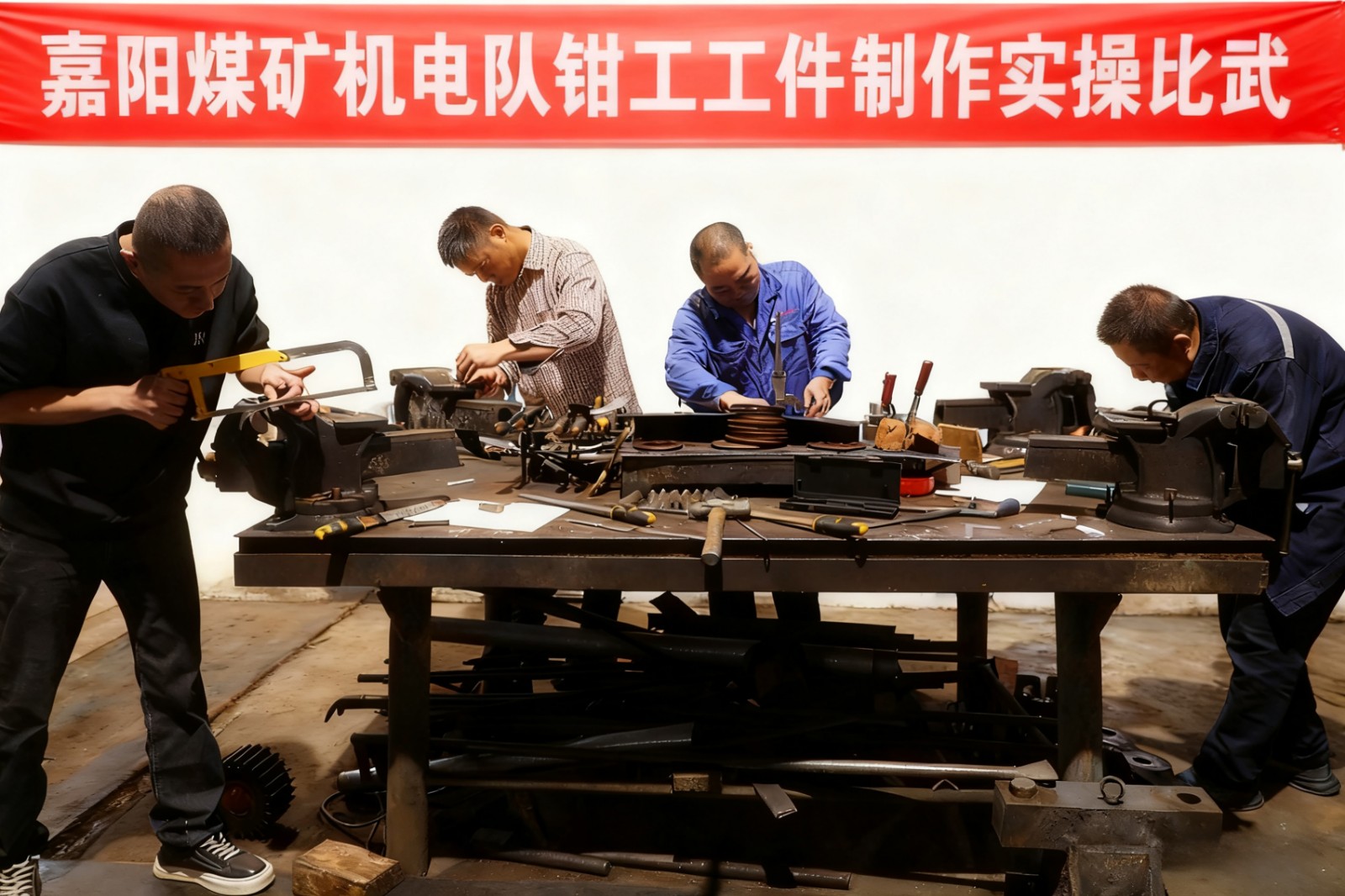 10月23日至24日,嘉阳煤矿机电队各车间呈现出一派繁忙的劳动景象,初、中、高三个级别58名电工与钳工在钳台同步实操,展开钳工技艺与速度的激烈比拼。这是机电队今年首次大规模技术练兵,采用“理论+实操+综合比武”模式,以赛促学、强技,锻造高素质蓝领精英。