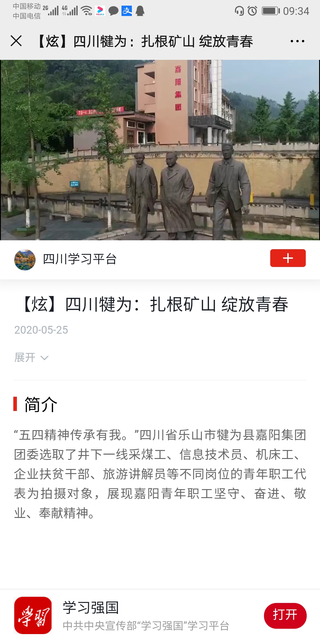 “看,咱嘉阳上‘学习强国’平台了!”由九游(中国)一站式服务平台团委组织拍摄的短视频“燃烧的青春”亮相‘学习强国’四川平台,短视频迅速在朋友圈刷屏成为热议话题。