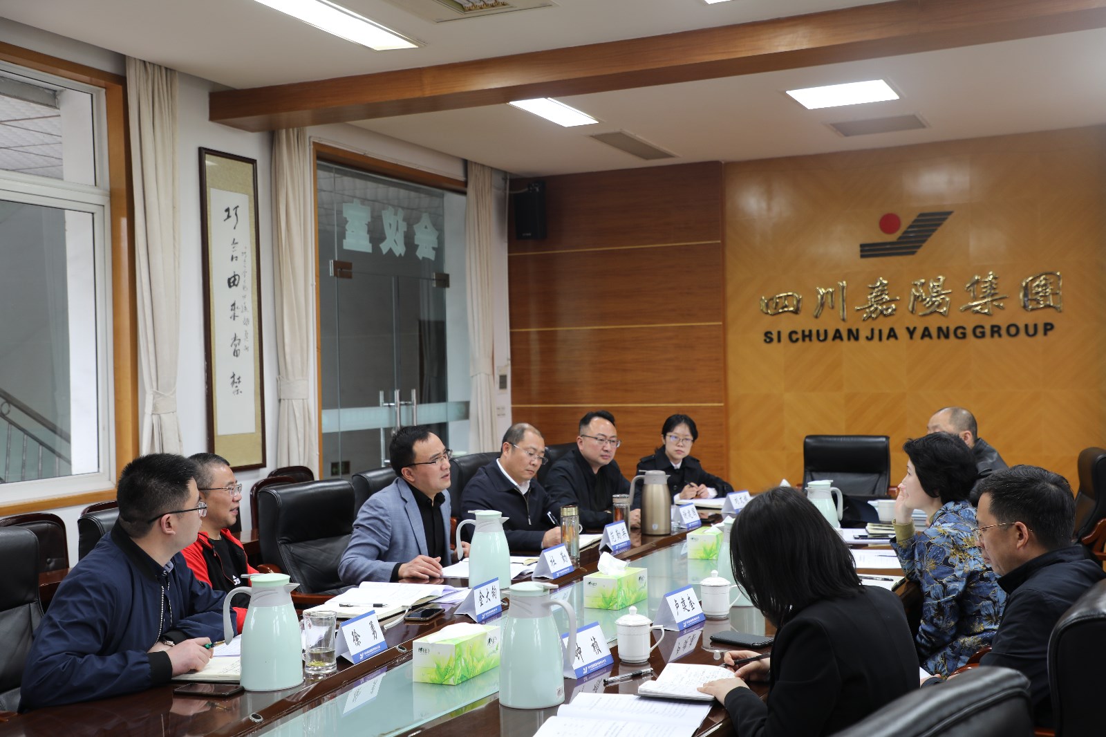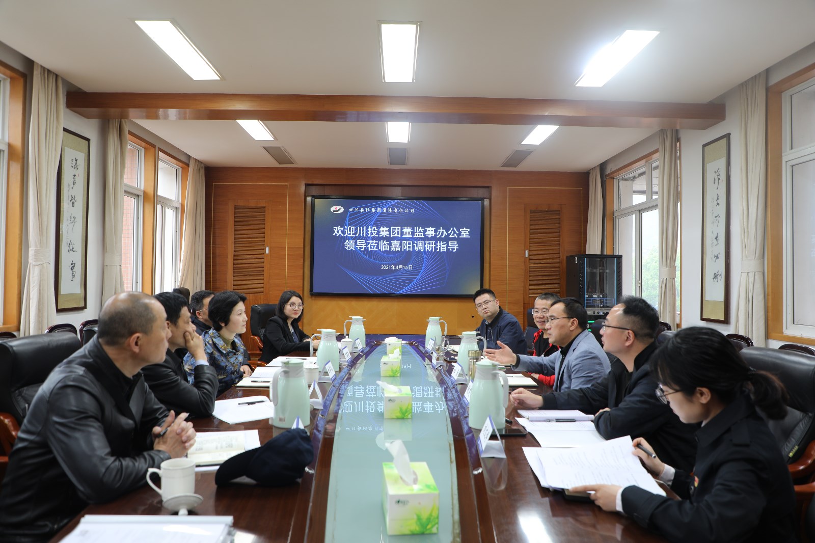 为进一步完善企业法人治理结构,促进企业健康持续发展。4月15日下午,川投集团董监事办公室主任白翠红率队赴嘉阳调研指导工作,九游(中国)一站式服务平台党委书记、董事长杜勤,总经理范勤英,党委副书记谢建国,副总经理金大钧等陪同调研。