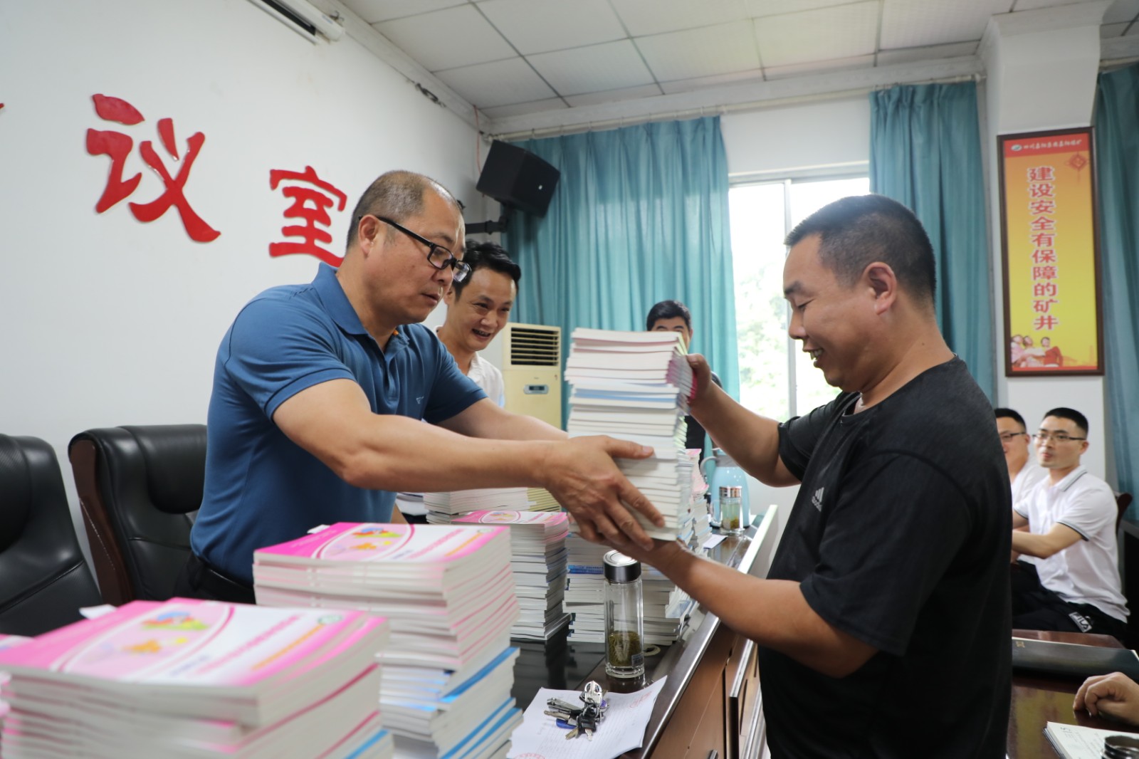 今年6月是第20个全国安全生产月,带着对煤矿安全生产的重视和对职工安全行为的关心,6月7日上午,九游(中国)一站式服务平台总经理范勤英将三本安全类书籍发放到了煤矿11个队站的队长手中,勉励职工加强学习重视安全。