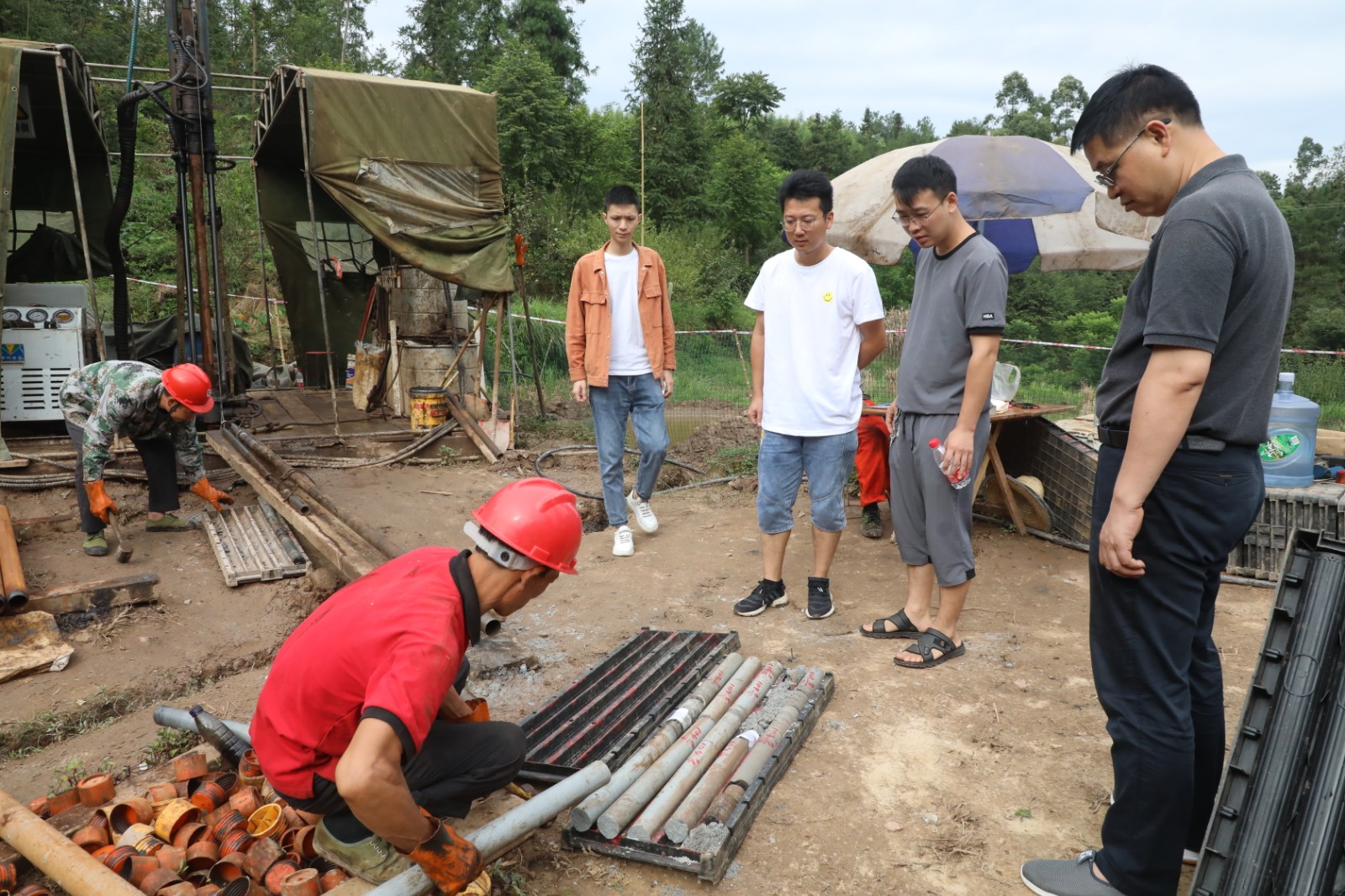 集团公司于近日展开嘉阳煤矿煤田补充地质勘探,9月7日,副总经理、总工程师袁成金率队到勘探点检查工程进展情况,提出工作要求。