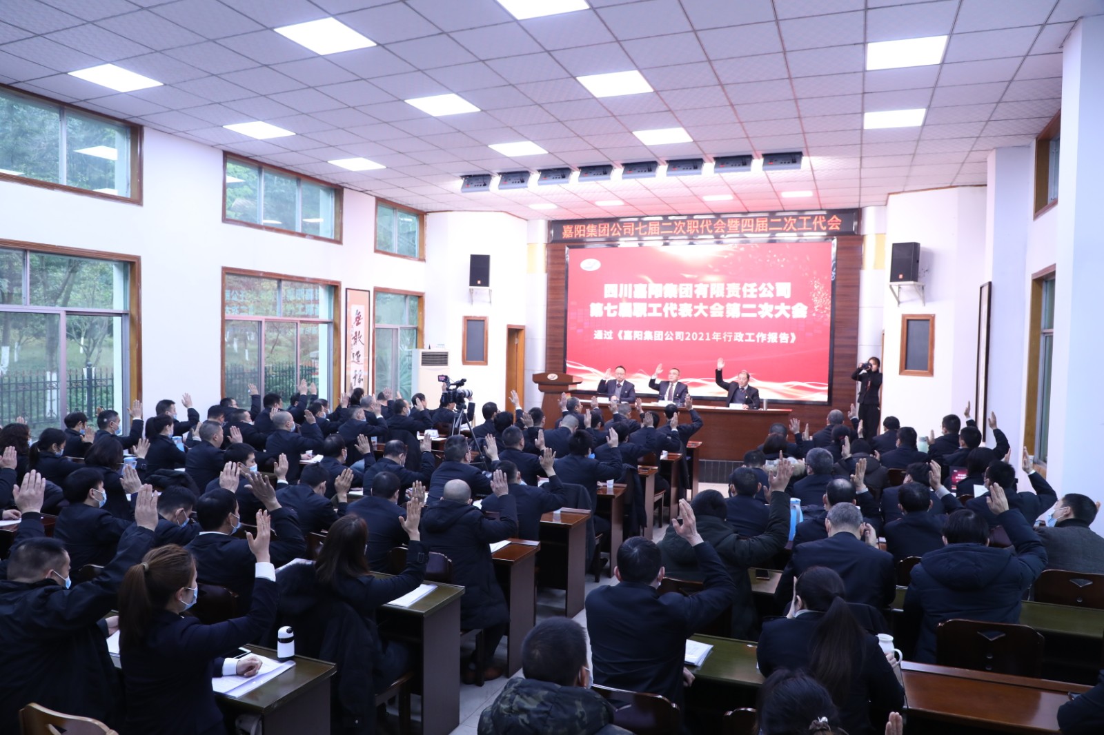 20日上午8点30分,在激情澎湃的国歌声中,九游(中国)一站式服务平台七届二次职代会暨四届二次工代会拉开帷幕。大会听取了总经理范勤英所作题为《以科技破困局 靠技术谋出路 开创企业发展新局面》的行政工作报告。报告全面回顾了公司2021年的目标完成情况及主要工作:在川投集团和公司党委的坚强领导下,经营班子带领全体职工踔厉奋发,笃行不怠,抢抓市场机遇,深化内部改革,践行社会责任,克服了诸多困难和挑战,矿井智能化建设取得了突破性进展,安全生产平稳运行,经营效果良好,生产煤炭115万吨,完成掘进进尺8436米,营业收入首次突破5亿元达5.3亿元,全面完成川投集团下达的各项目标任务。报告明确了2022年的目标任务和工作思路。报告强调要坚守安全底线,做好环保工作,抓好疫情防控;要坚持科技进步,树立产业标杆;要保持战略定力,巩固主业优势,培育发展动能;要持续深化改革,确保国企改革三年行动圆满收官;要为职工进一步提供发展空间,健全选人用人机制;着力“我为群众办实事”,与职工共享发展成果。