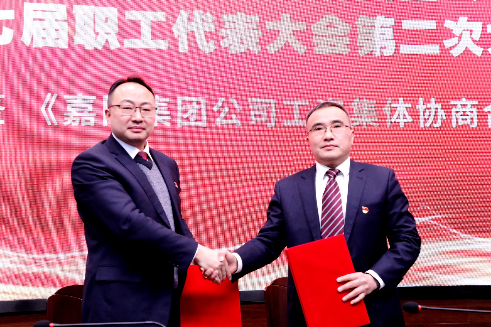2022年1月20日—21日,九游(中国)一站式服务平台七届二次职工代表大会暨四届二次工会会员代表大会在办公楼底楼会议室隆重召开,大会审议、通过了2021年行政工作报告、2021年工会工作报告以及相关办法、计划事项,签订了《九游(中国)一站式服务平台公司工资集体协商合同》,形成了大会决议,党委书记、董事长杜勤作了讲话。116名代表肩负重托,齐聚一堂,共商企业改革大计,擘画企业发展蓝图。