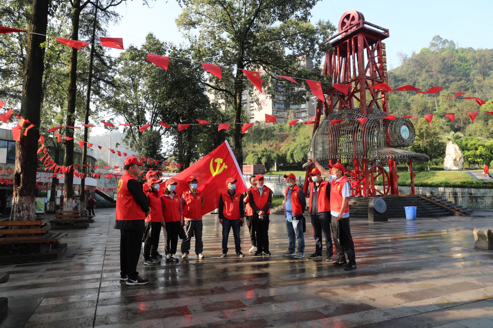 三月的嘉阳矿区生机盎然、花开满园,前来踏春、赏花、坐小火车的游客络绎不绝。“今天的任务主要有两项,一组负责办公楼前绿化带的栽种,一组捡拾公园、跃进站的白色垃圾,注意安全”,在嘉阳国家矿山公园游客接待中心,综司的党员志愿者们简单分工后便分头行动起来。
