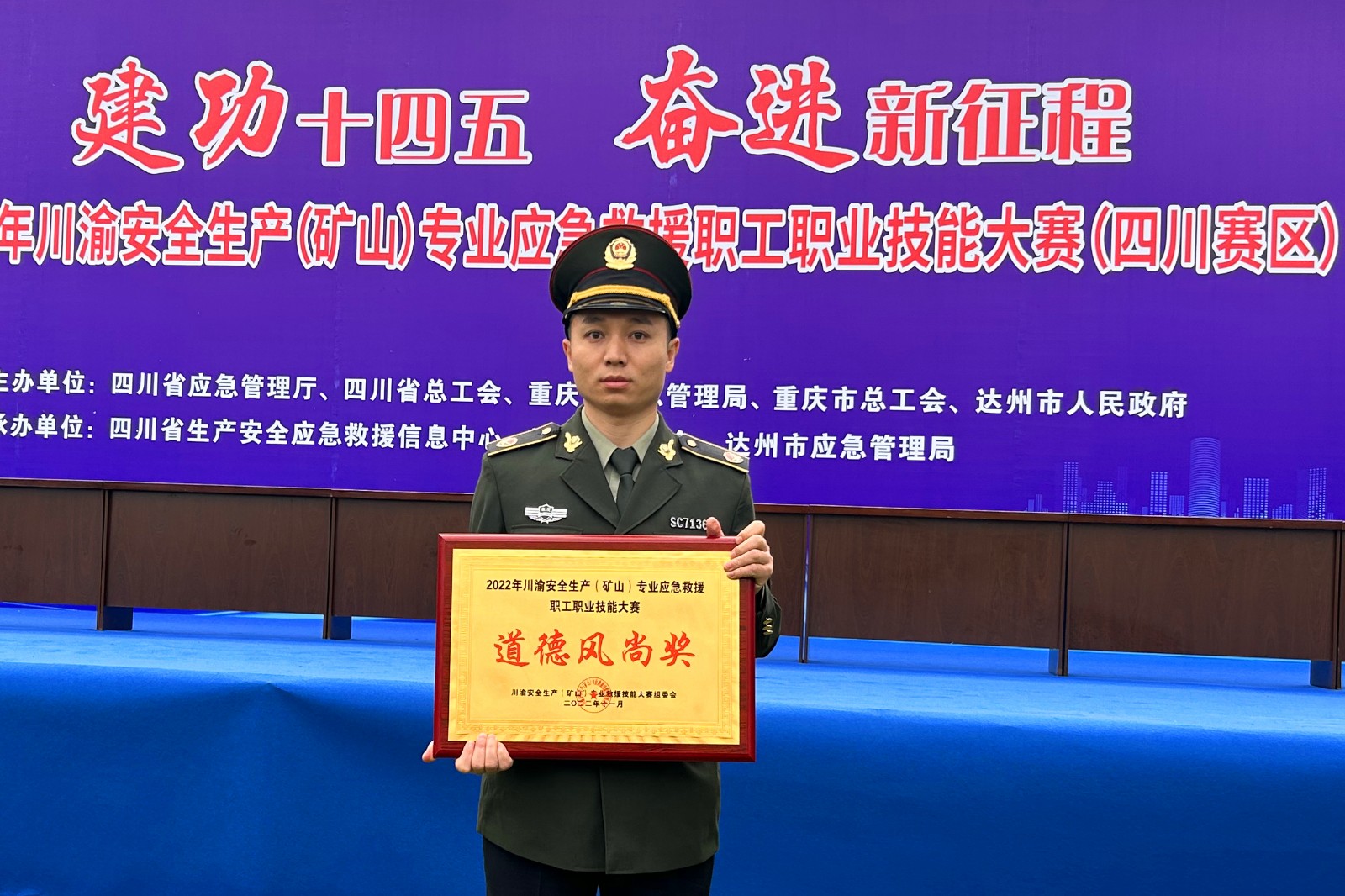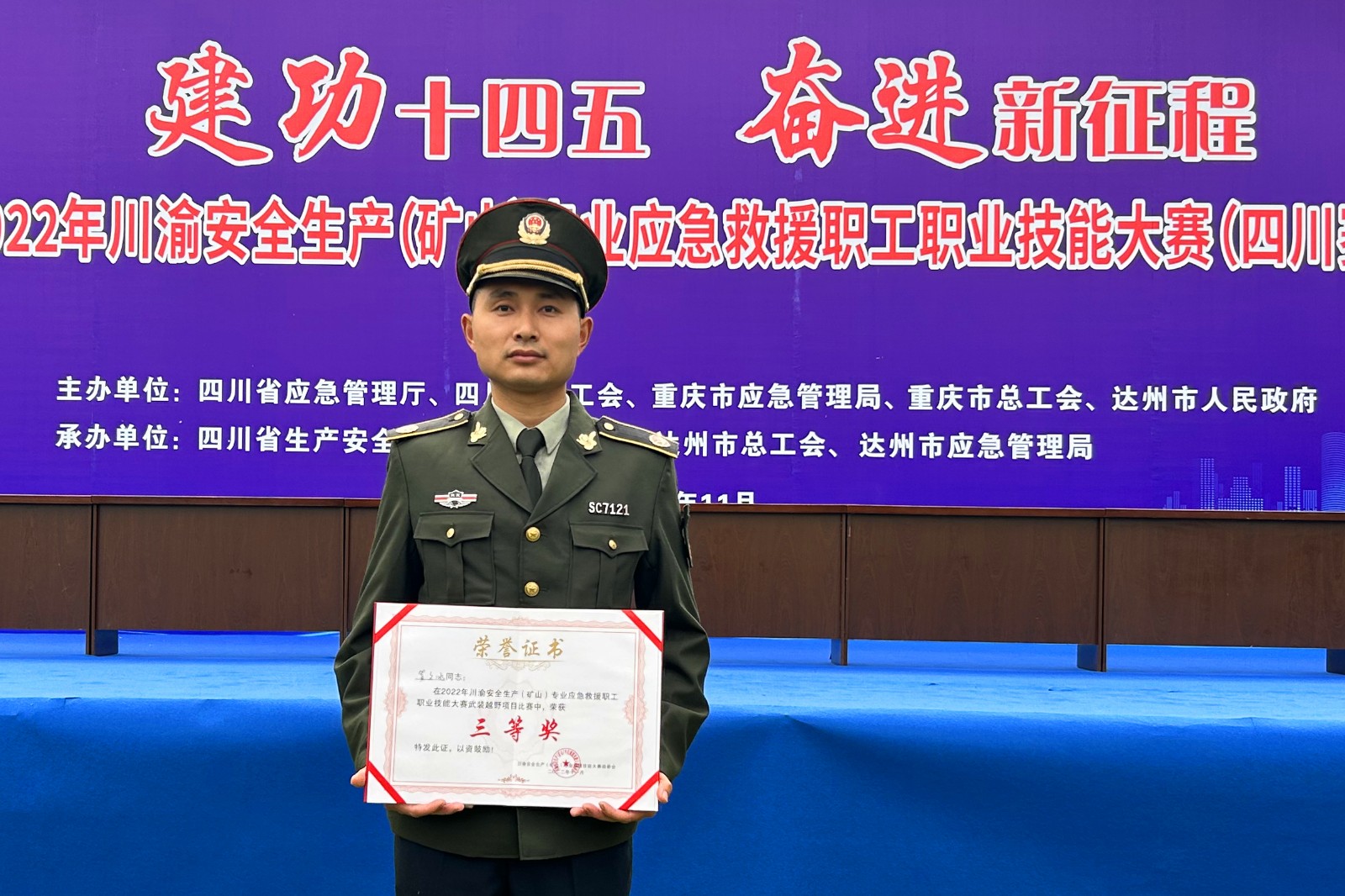 11月23日至24日,川渝安全生产(矿山)专业应急救援职工职业技能大赛在四川省达州市举行,九游(中国)一站式服务平台矿山救护队参赛队员贺文冰荣获武装越野项目三等奖。