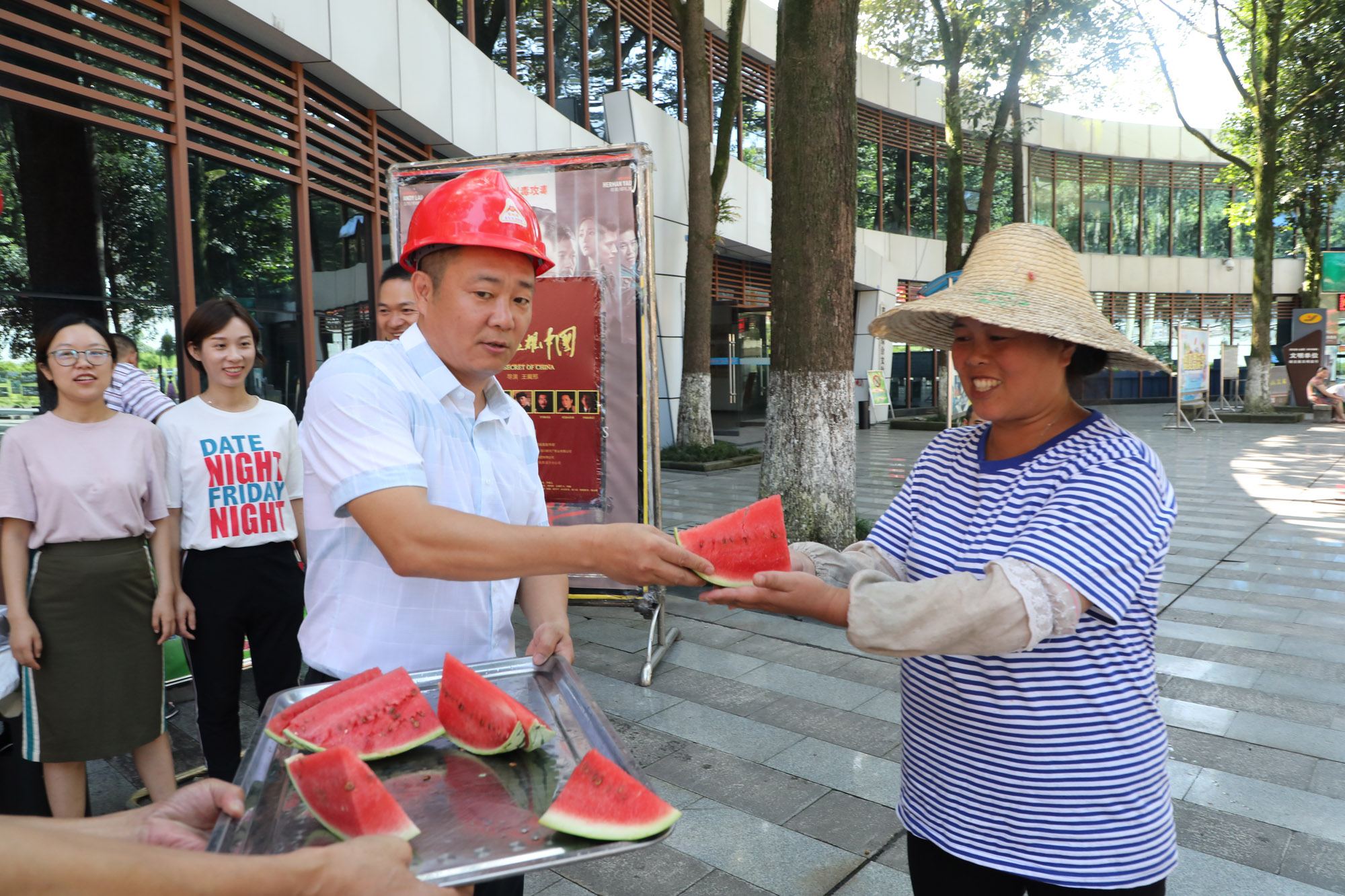 15日下午两点,火辣辣的太阳把地面晒得发烫,一股热浪迎面扑来。党委书记、董事长杜勤率机关第一党支部、第二党支部的党员来到嘉阳煤矿天锡井工业广场,现场给大家加油鼓劲,“大家辛苦了!吃块西瓜凉快凉快,我代表公司、党委感谢大家,向你们表示敬意。”“面对炎热的天气,你们坚守岗位辛勤工作,战高温、斗酷暑,保生产、增效益,为公司生产经营做出了贡献,希望你们保持良好的身体状态,注意安全”。在离矿区十公里处的反斜井堆矸场,杜书记把工人们召集在一块儿坐下来吃西瓜,一边吃一边聊,像兄弟一般亲切地与之谈心,关心大家在这儿的班中餐安排得怎样,并叮嘱大家工作时要注意安全,做好防暑降温。