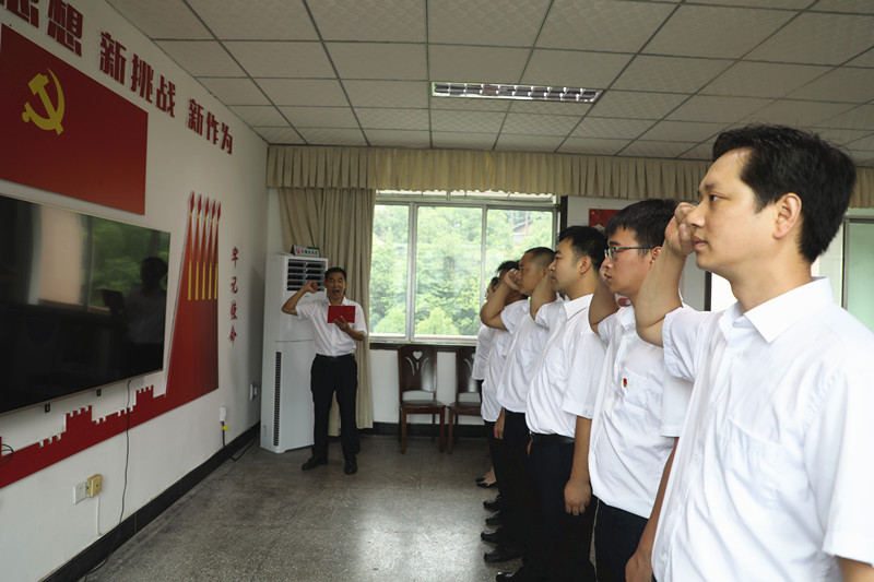 “我志愿加入中国共产党,拥护党的纲领,遵守党的章程,履行党员义务,执行党的决定,严守党的纪律,保守党的秘密,对党忠诚,积极工作,为共产主义奋斗终身……在党群工作部部长姚建军的领誓下,新党员们庄严宣誓。