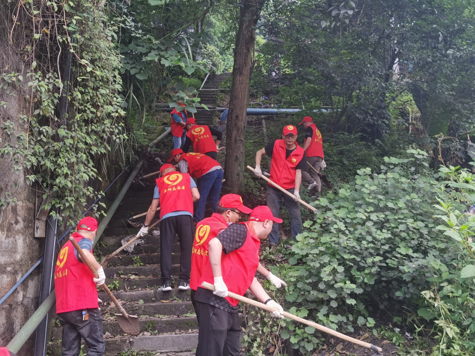 5月20日,嘉阳煤矿矿办一二三支部联合开展“劳动者最美丽”主题义务劳动,18名党员干部集中力量半小时全面清除机电队机组班外山坡和水沟旁的杂草。